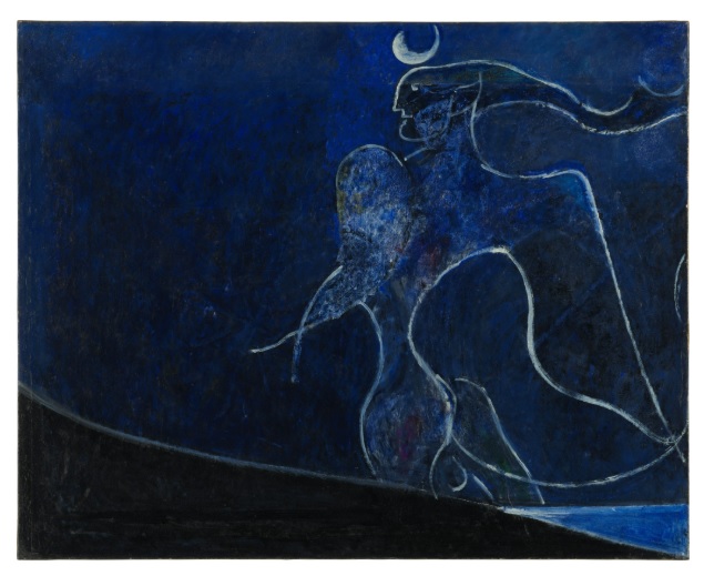 初期には風景や人物を描いていましたが、次第に幾何学的抽象へと移行。さらに独自の象徴的イメージへ発展させ、「アマラント(Amalassunta)」や「反逆の天使(Angelo Ribelle)」といったシリーズでは、月や星、天使のようなモチーフを用いながら、宇宙的で神秘的な世界観を展開しました。軽やかな線と澄んだ色彩、余白を活かした構成は、静けさと緊張感を同時に感じさせます。