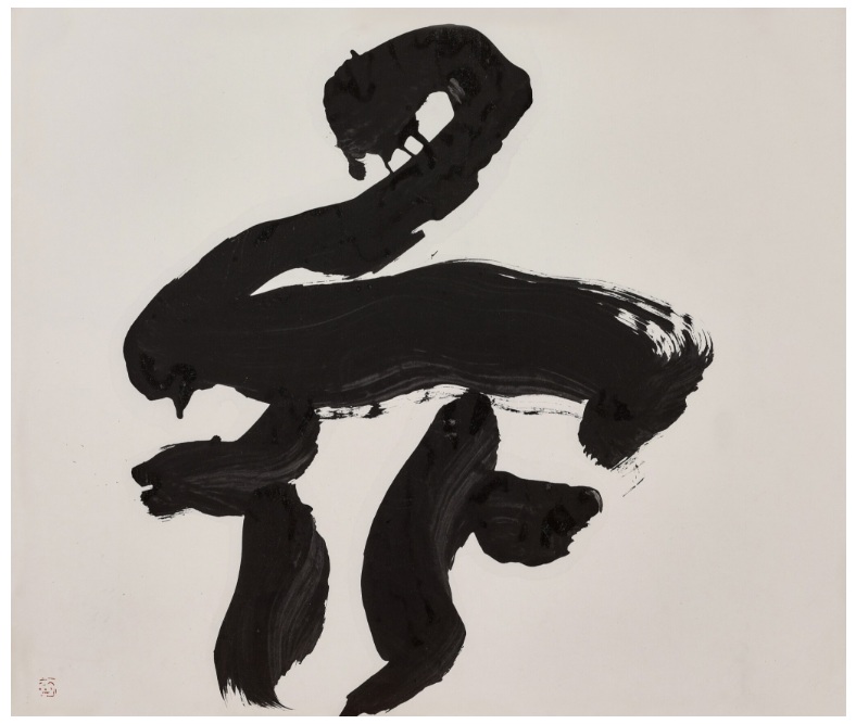 井上有一は、1916年東京生まれ。「東洋のジャクソン・ポロック」とも例えられる現代書家で、絵画的ともいえる生命力あふれる表現により、伝統的な書法とは一線を画す新境地を開拓しました。